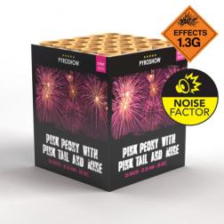 Pink is our new obsession in the Pink Peony with Pink Tail and Mine Pro effect cake. Sending skyward vivid pink cluster mines to bright pink tails. Before wonderful big pink peony stars fill the sky. This professional style category 2 firework is great for gender reveal parties. |